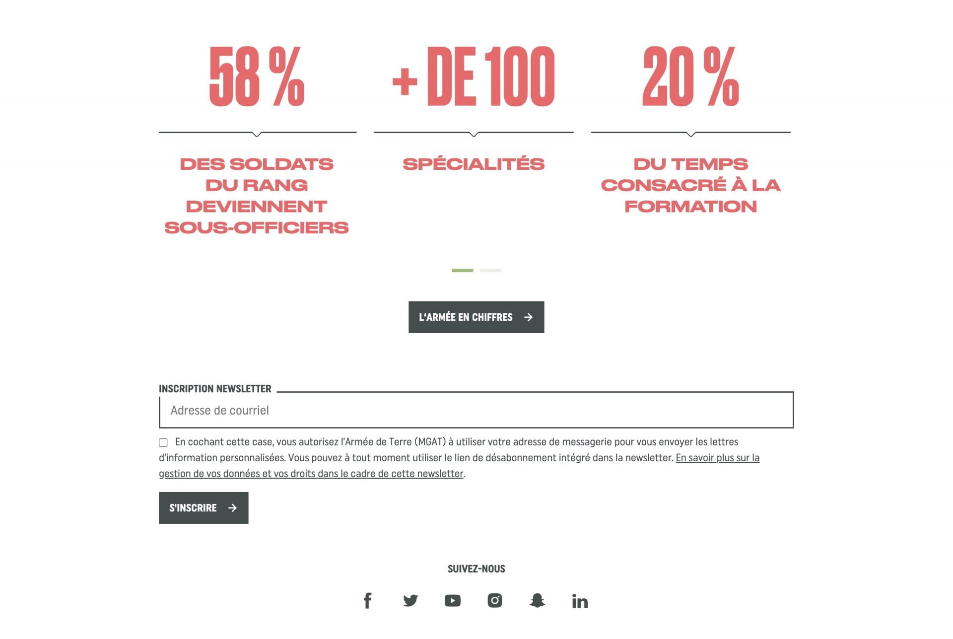 Site de recrutement de l'Armée de Terre. 15 000 jeunes par an.