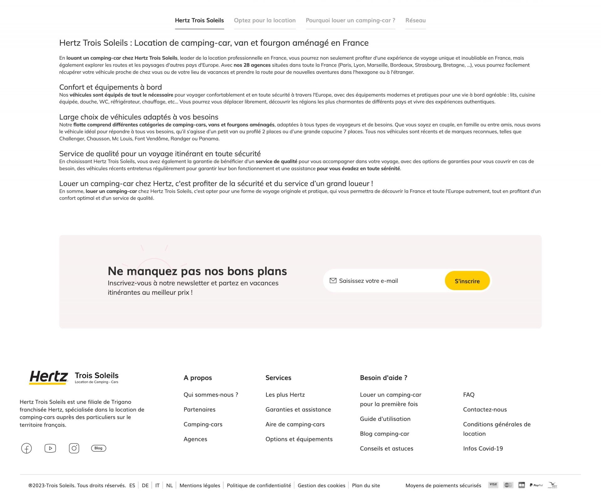 Refonte et stratégie digitale du site de location de camping car Hertz 3 soleils