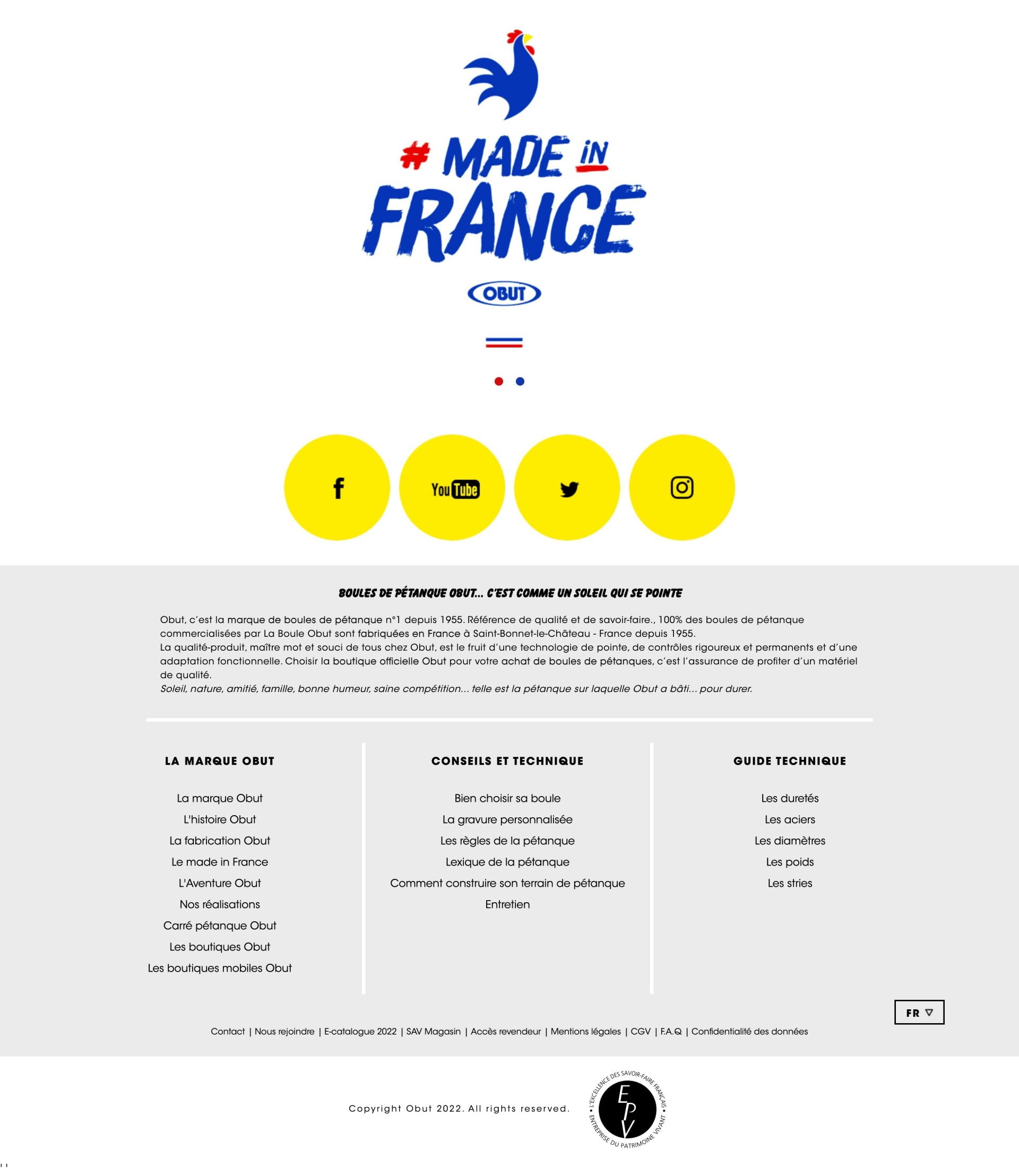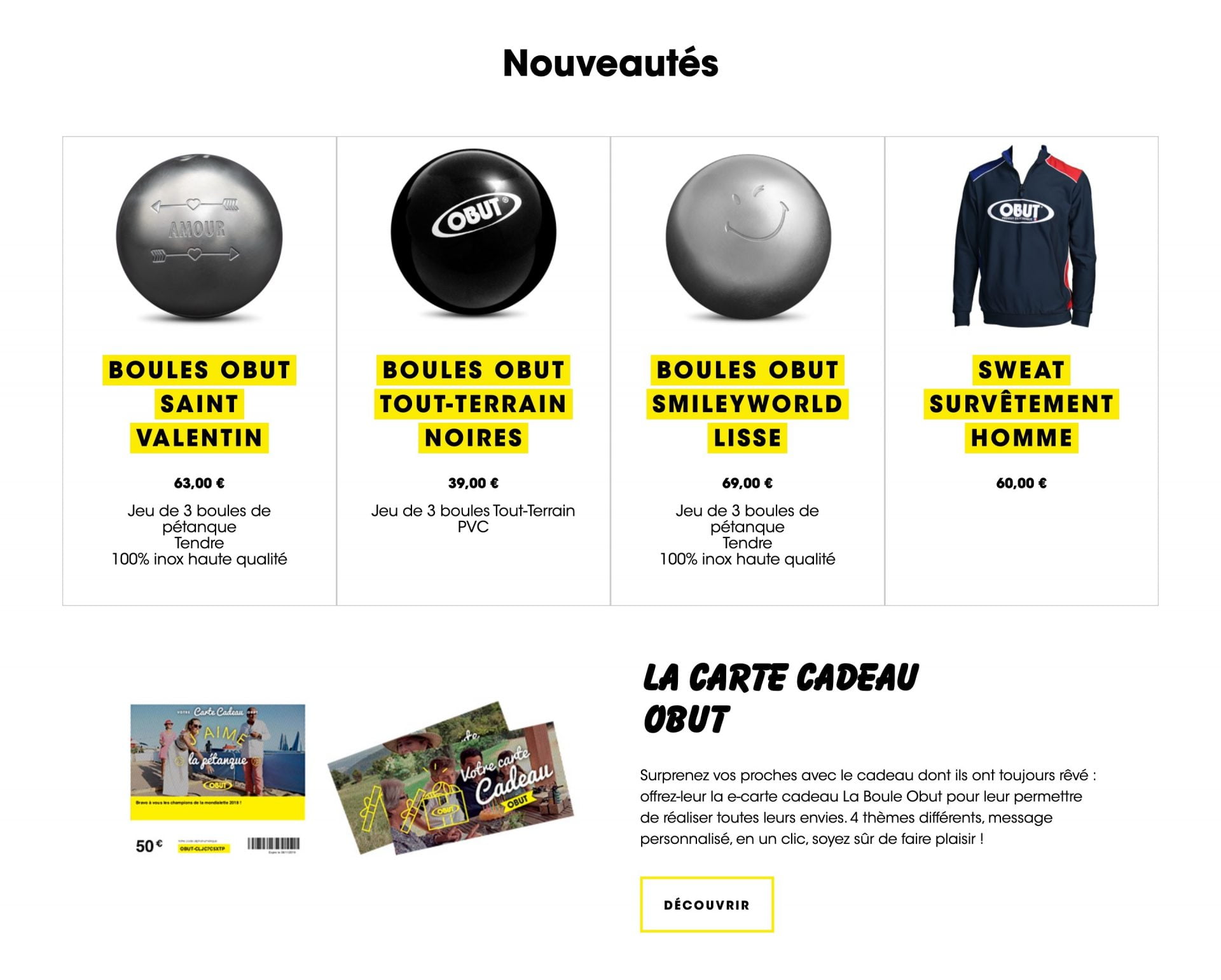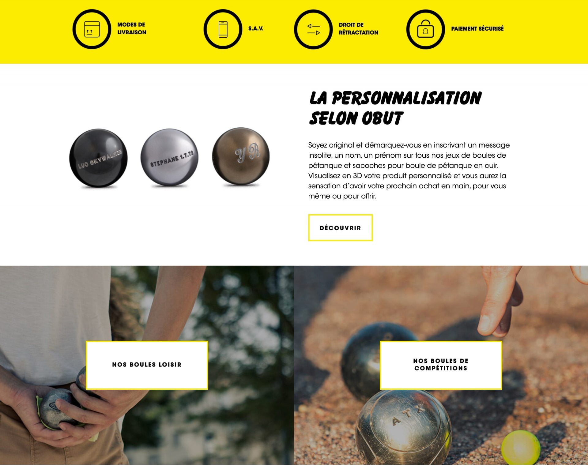 Site de vente en ligne des boules de pétanque Obut. 30% du CA annuel